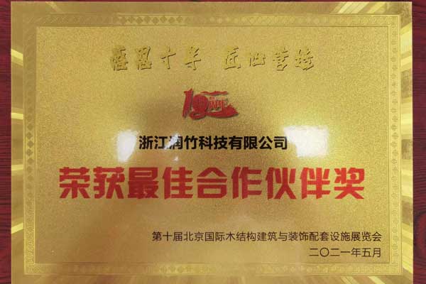 2021年第十屆北京國(guó)際木結(jié)構(gòu)建筑與裝飾配套設(shè)施展覽會(huì)“最佳合作伙伴獎(jiǎng)”